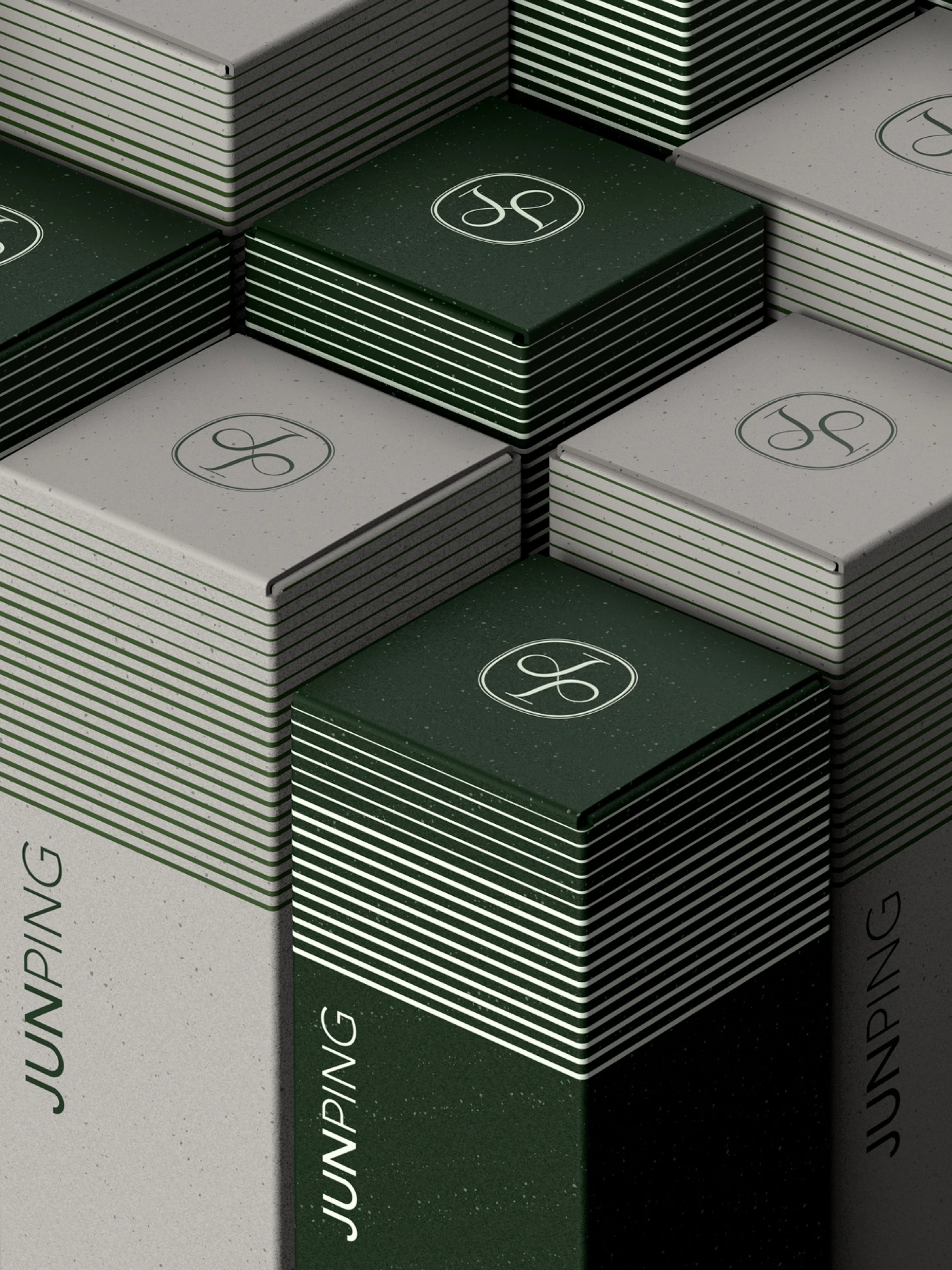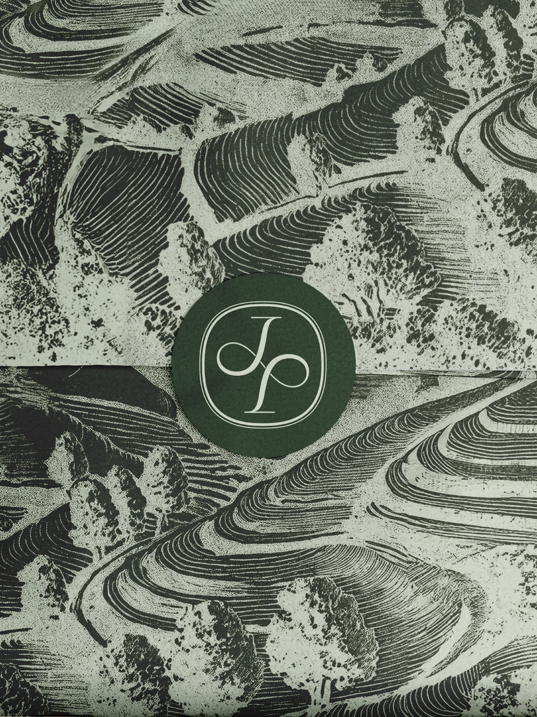 A rhythmic line motif applied across the boxes translates the sweeping contours of plowed fields and terraced plantations into a modern graphic element.