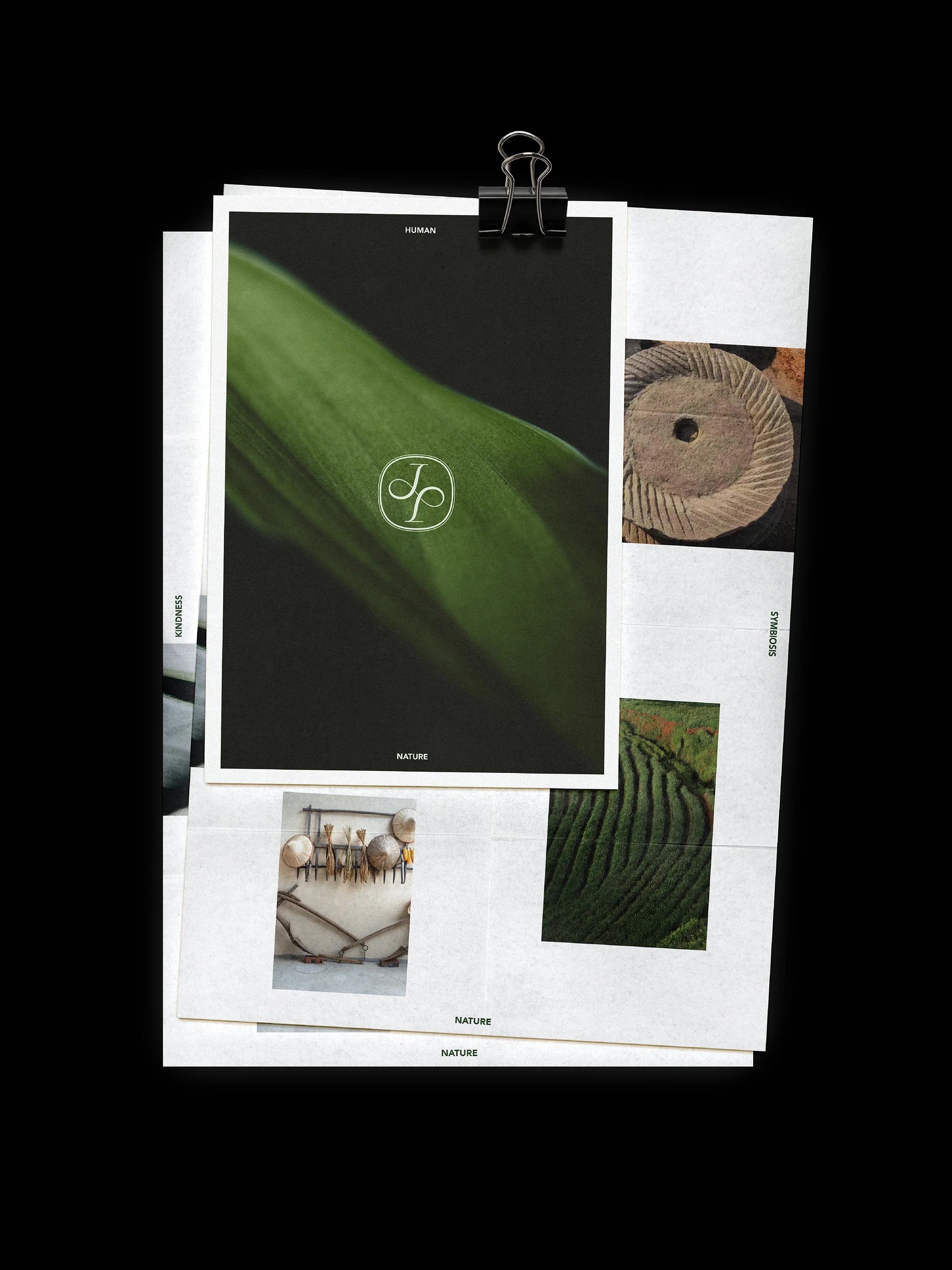 The visual language is grounded in this agricultural connection. The color palette and textures were drawn from raw soil, farm, leaves and mountain mist.