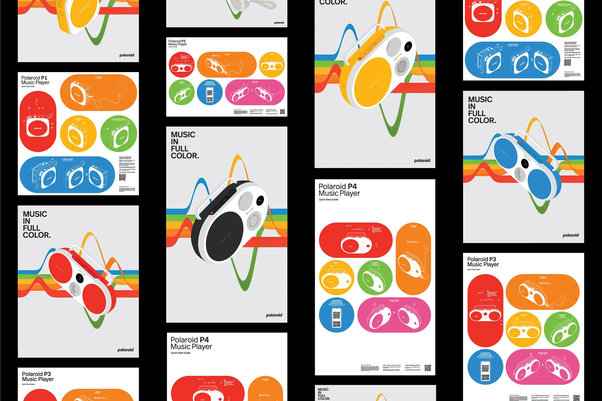 We collaborated closely with Polaroid's design team, Chief Design Officer, Ignacio Germade and Director of Product Design, Nick Woodley to create the identity and packaging for the new Polaroid Music Players.